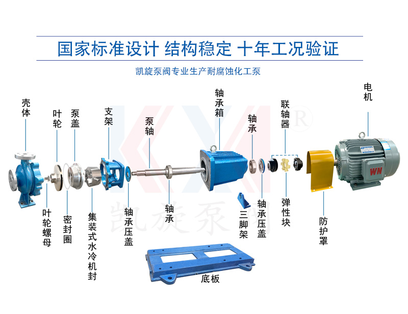 lH不銹鋼離心泵,過流部件采用304、316L等高品質(zhì)不銹鋼材質(zhì)制造。運(yùn)行穩(wěn),壽命長,是輸送堿液的理想設(shè)備。純堿液(苛性鈉水溶液、氫氧化鈉、氫氧化鉀等)建議選擇雙端面沖洗水機(jī)封,沖洗方案p54。不建議WB2配無壓機(jī)封,壽命很短,機(jī)械密封的磨面會(huì)析出堿液,堿液和空氣中的二氧化碳反應(yīng),生成白色的碳酸鈉結(jié)晶。